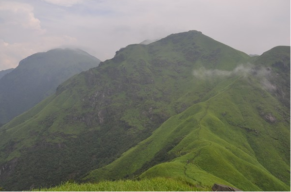 山脊路上,翻过一座又一座的山头,全程海拔落差在1200多米--1900米之间起伏连绵,满目的绿色也随之少限延伸。
